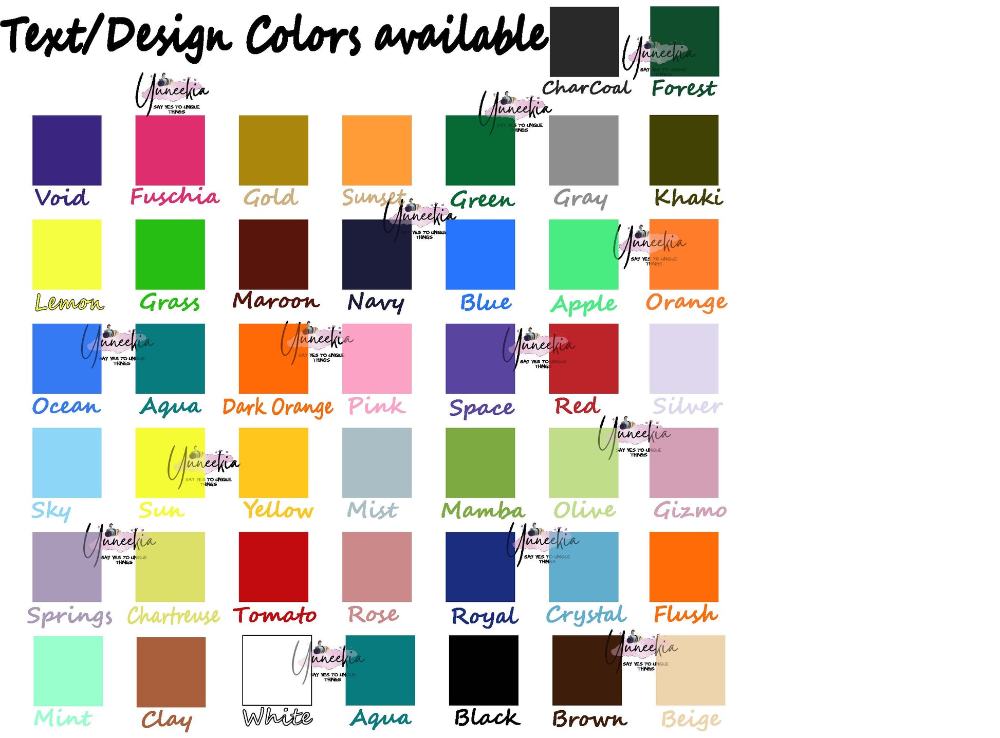 Note: We cannot print black text on black and dark heather grey items, nor white text on white shirts. Ther