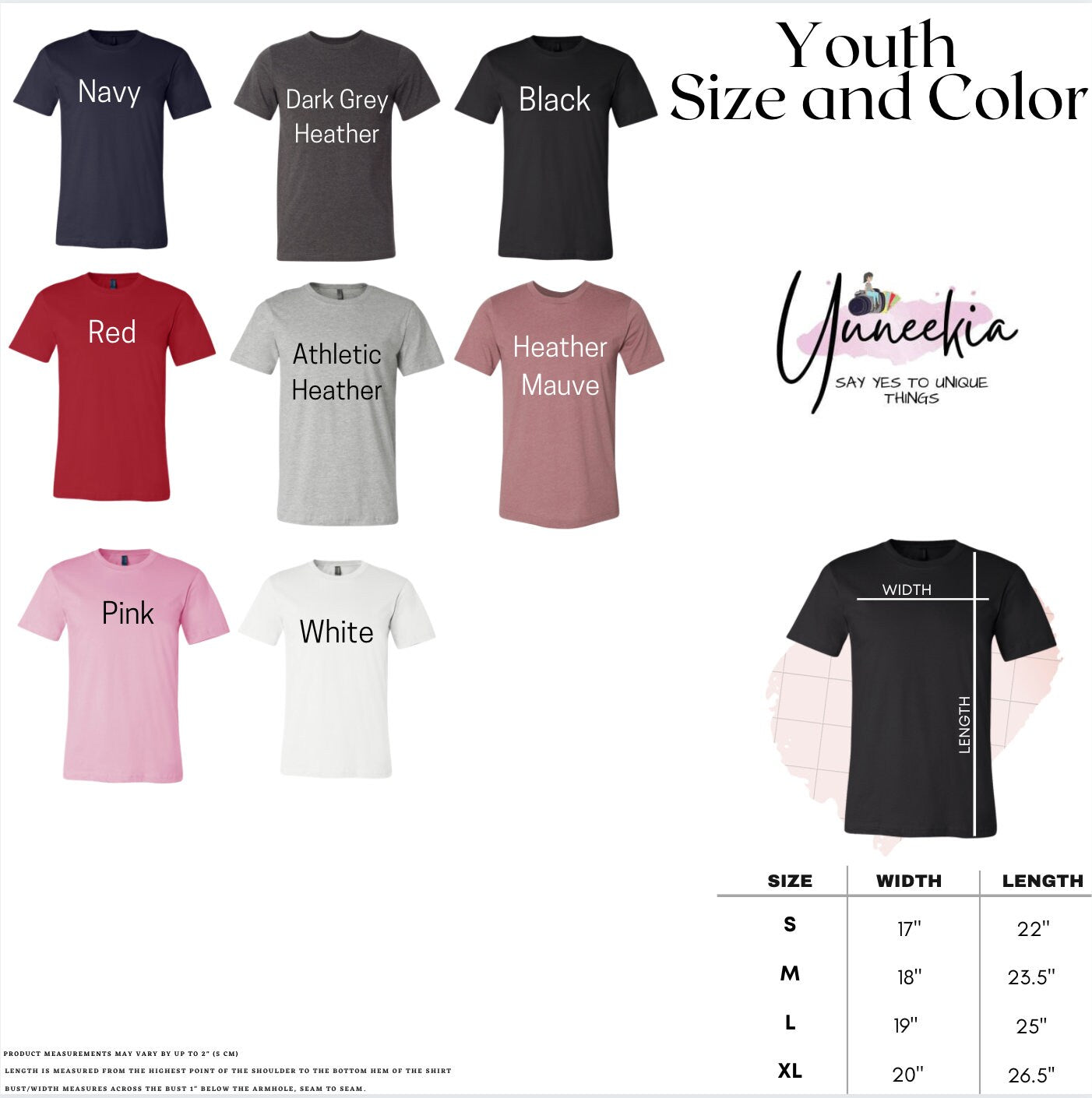 Note: We cannot print black text on black and dark heather grey items, nor white text on white shirts. Ther